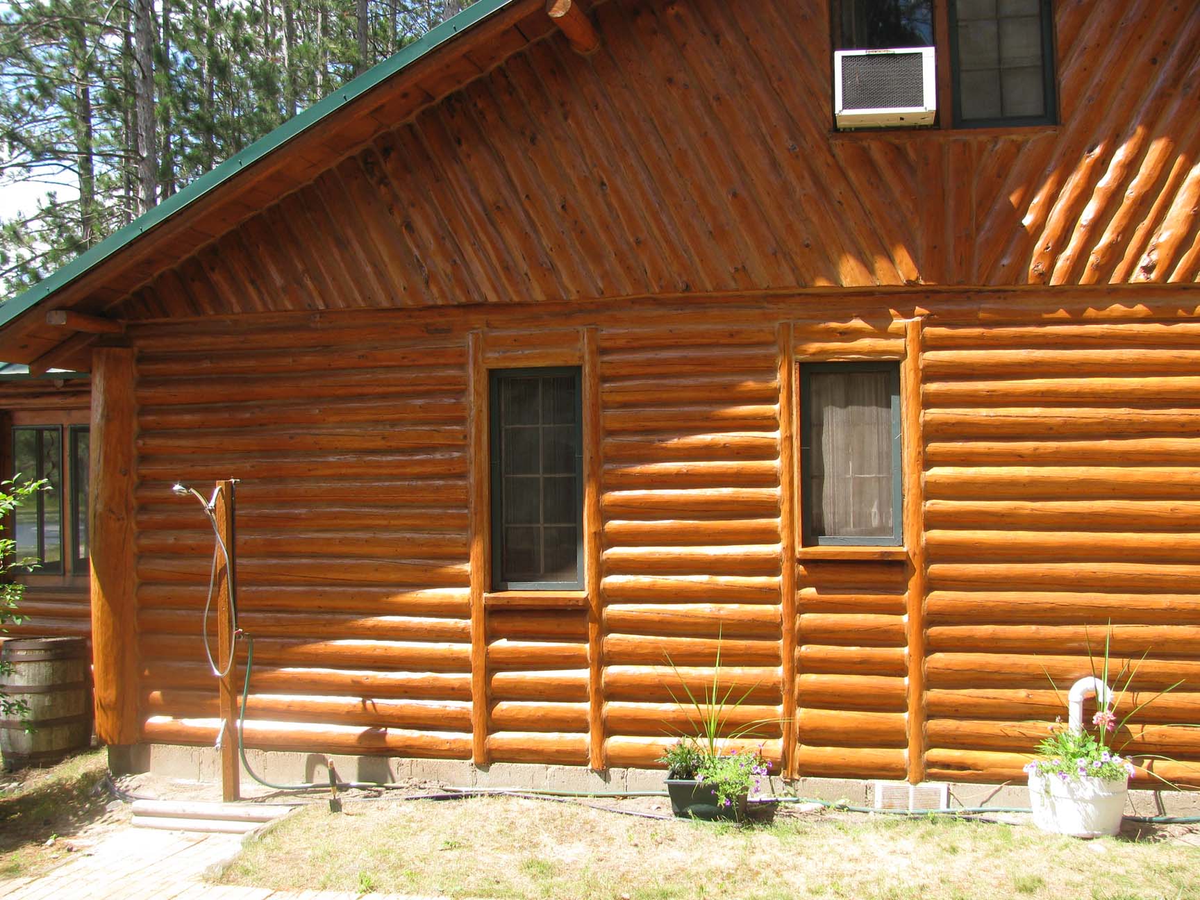 We have worked on this house several times through the years. We have repaired, added, and restored. This house was all ceder and had been blasted once already, unfortunately the product that was applied after formed a skin and peeled off. We reblasted the whole house again, recaulked and applied a penetrating oil.