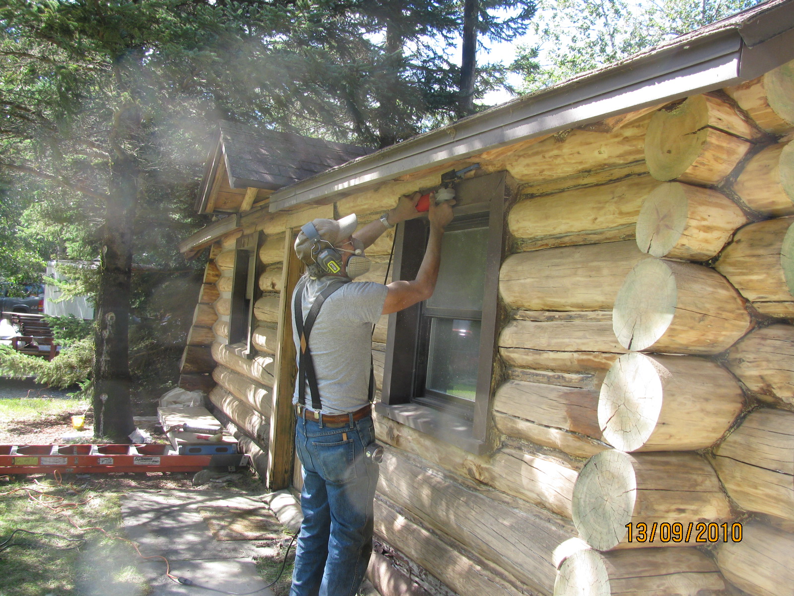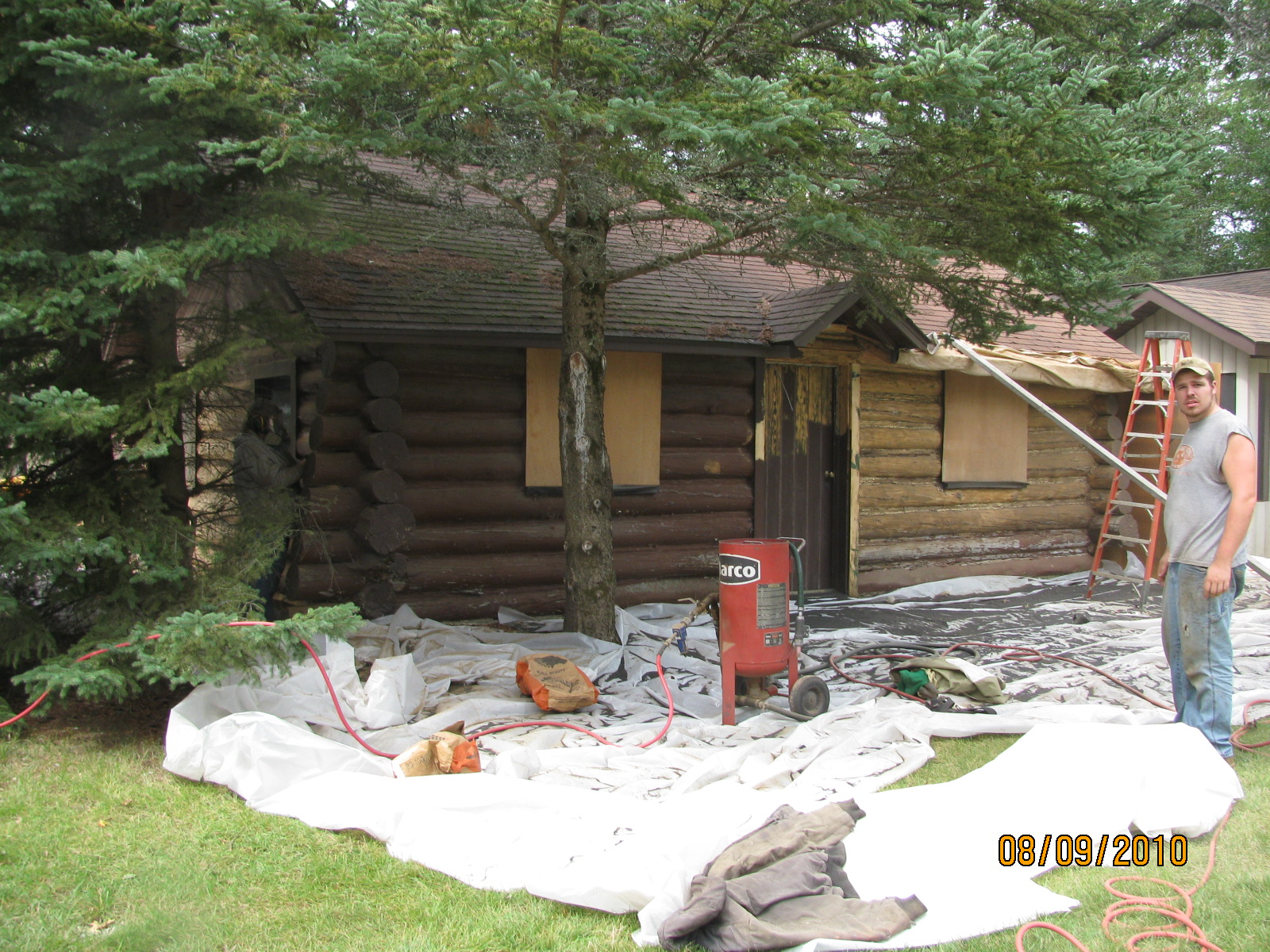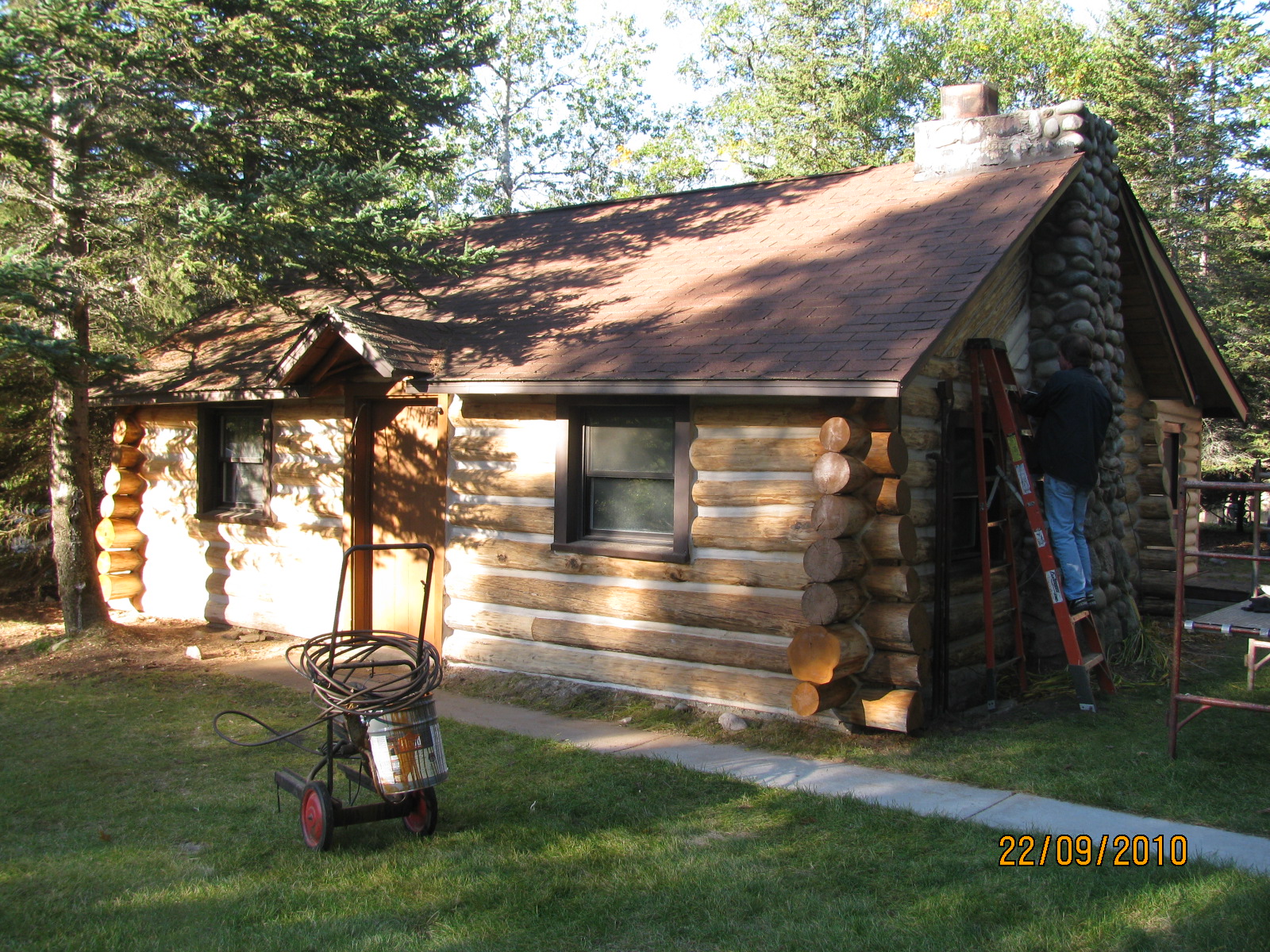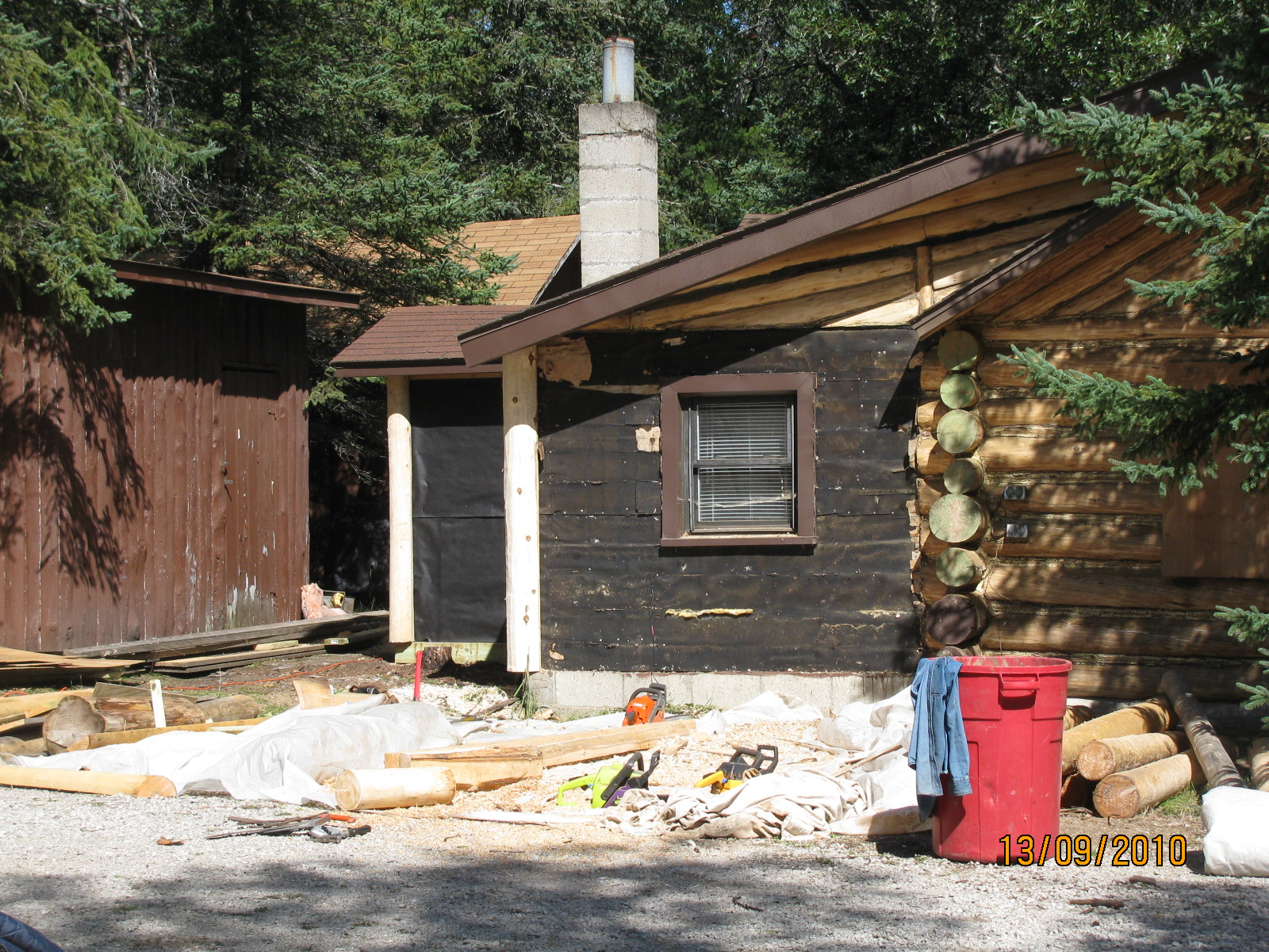 This is the latest house that we have finished. We restored the original full log portion of the house including repairing rotten logs then we resided the back addition on the house.